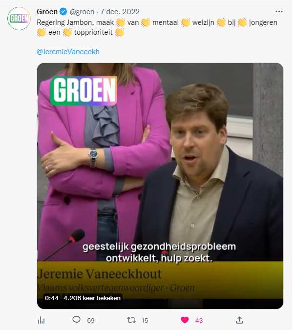 korte video’s voor social media (Facebook, Twitter, Instagram, TikTok) van Groen-parlementsleden